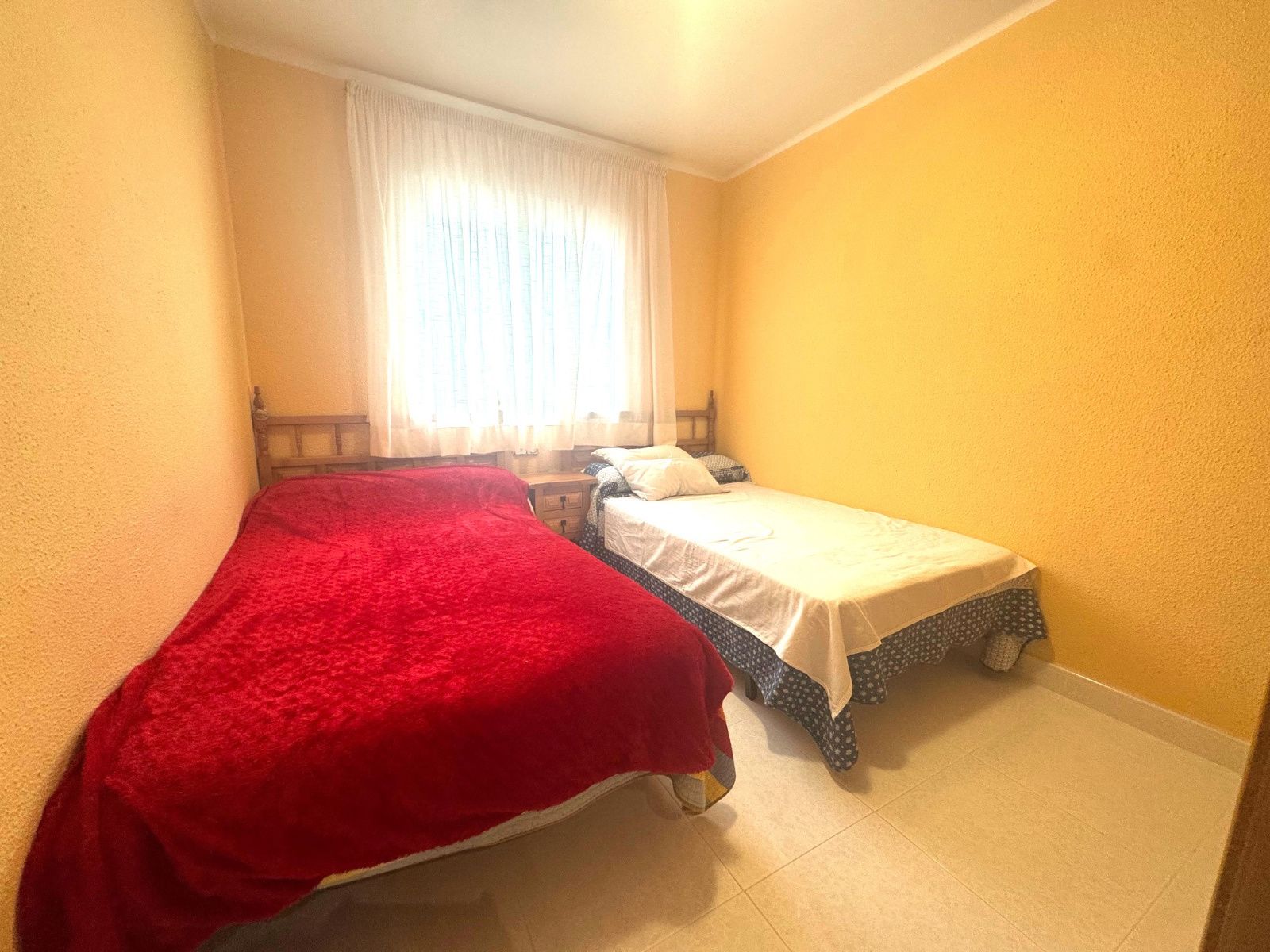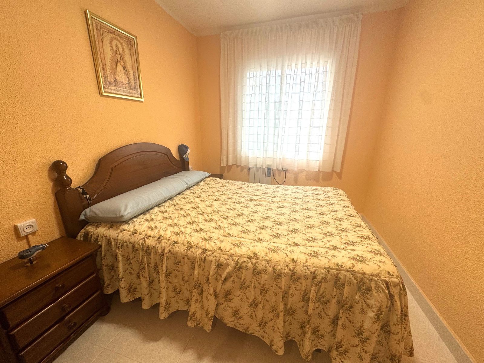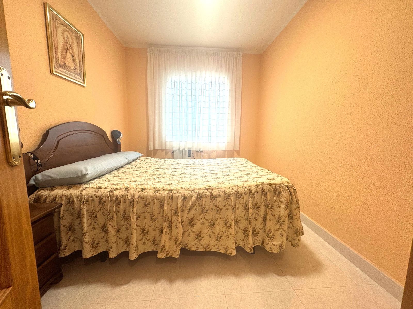 Ubicado en una primera planta, la vivienda ofrece una cuidada distribución con tres amplias habitaciones dobles, todas ellas exteriores. Dispone de un baño completo con plato de ducha y un salón-comedor luminoso y acogedor, equipado con bomba de aire frío/calor, que conecta directamente con una espectacular terraza de generosas dimensiones, con orientación Sur-Oeste, perfecta para disfrutar del sol y de agradables veladas al aire libre.
