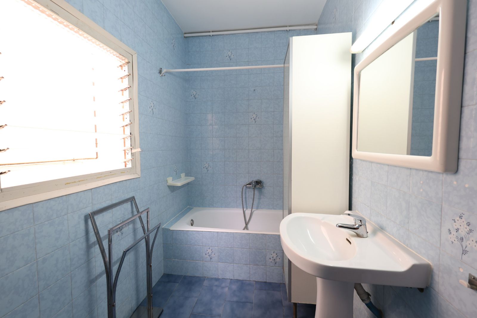 Baño con bañera y ventilación natural.